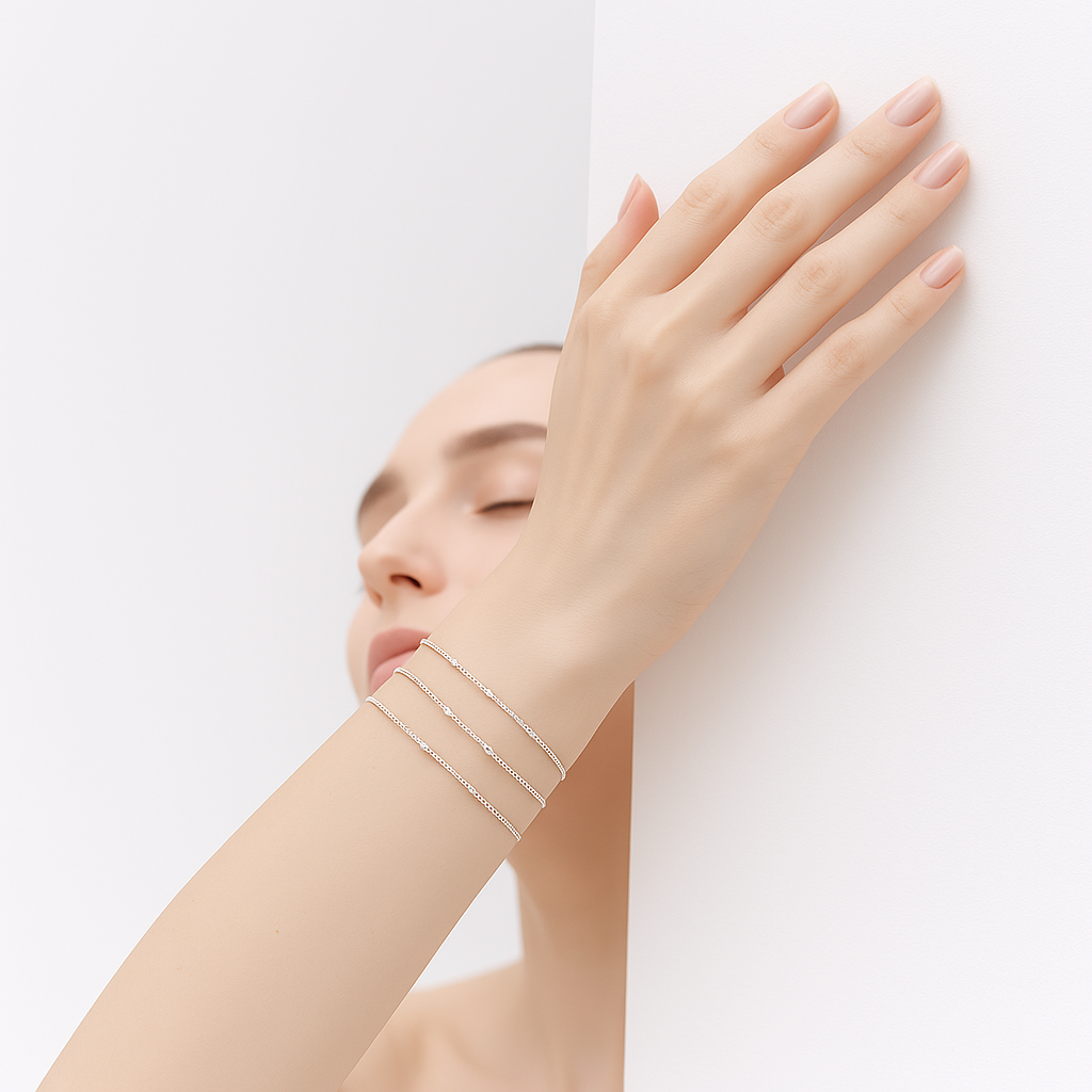Piezas atemporales en acero inoxidable hipoalergénico y baño en oro 18K, diseñadas para acompañarte cada día. Minimalistas, versátiles y resistentes; joyas pensadas para combinar entre sí y elevar tu estilo sin esfuerzo. Evitar contacto con perfume, crema o agua salada. Limpiar con paño suave. Guardar en su estuche para preservar brillo y color. NOHOLAB — Joyas para cada día.